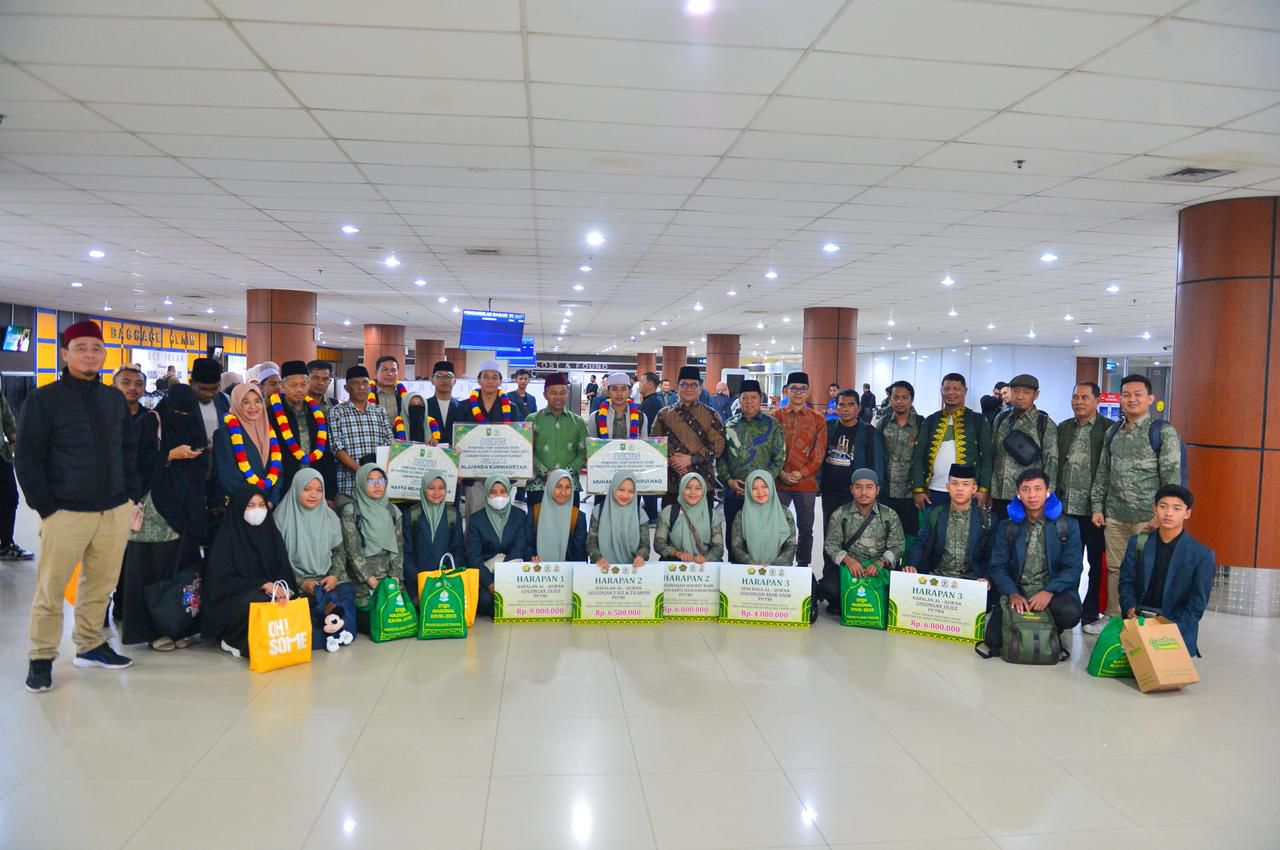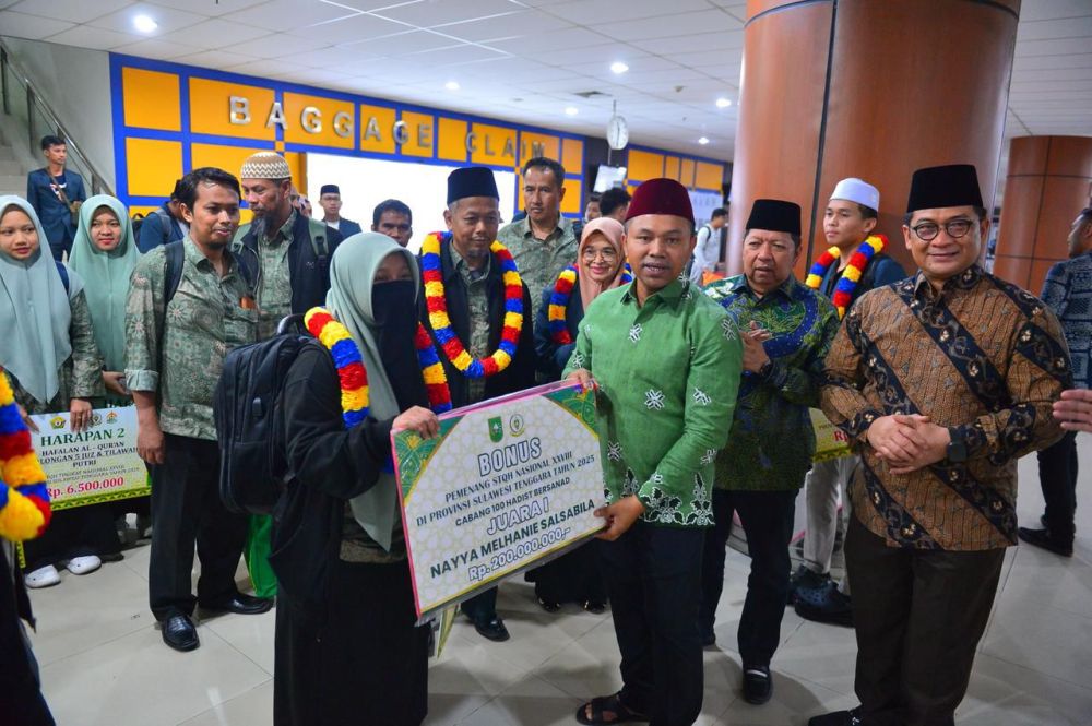 Sambutan hangat dan penuh haru mewarnai kedatangan para juara Seleksi Tilawatil Qur’an dan Hadis (STQH) Nasional XXVIII Tahun 2025 asal Provinsi Riau di Bandara Sultan Syarif Kasim II, Pekanbaru, Minggu (19/10/2025). Tiga putra-putri terbaik Riau ini berhasil mencatatkan nama dengan meraih predikat Juara 1 Nasional, disambut langsung oleh Gubernur Riau Abdul Wahid beserta jajaran pemprov. Atas prestasi gemilang yang mengharumkan nama daerah ini, Pemerintah Provinsi Riau memberikan bonus apresiasi sebesar Rp200 juta.